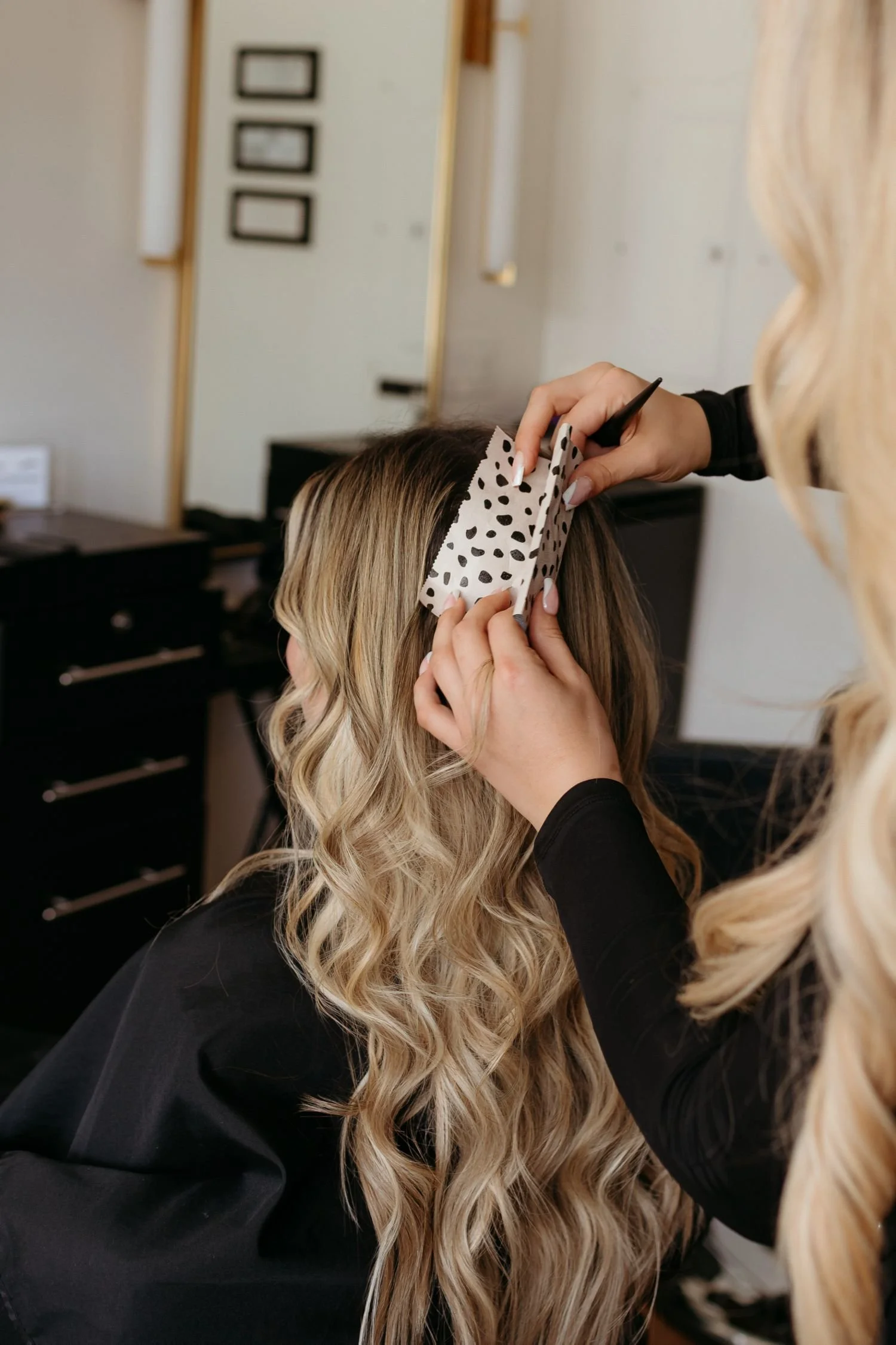 We specialize in a variety of hair extension install methods that provide natural and seamless blends. Two of our favorites are the hand-tied/ sew-in method and tape-ins, depending on your hair goals.